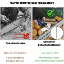 Disque d’affĂ»tage rapide et facile pour un affĂ»tage rapide et facile des lames de scie. Vous pouvez utiliser un certain type de meule pour affĂ»ter votre chaĂ®ne de tronçonneuse. Ça marche bien. N’appuyez pas trop fort. N’essayez pas d’utiliser des chaĂ®nes et soyez respectueux. Pensez au sens de rotation vers les dents !