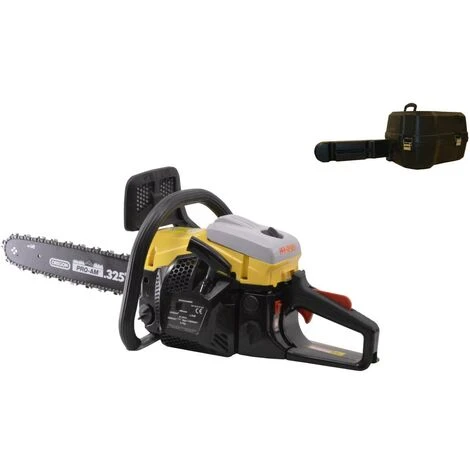 Cette tronçonneuse thermique d’une puissance de 45cc / 1,7 kw se caractĂ©rise par ses hautes performances et par sa robustesse. Avec son guide (et sa chaĂ®ne) Oregon de 400 mm, elle vous offre un travail de grande qualitĂ©. Efficace et pratique, elle dispose d’un système de graissage automatique et d’une double sĂ©curitĂ© de freinage. Facile Ă manier, vous pouvez travailler efficacement et en toute sĂ©curitĂ©. Cette tronçonneuse thermique est livrĂ©e avec son coffret de transport.VĂ©ritable outil professionnel, cette tronçonneuse est conçue pour supporter un usage intensif et sur de longues pĂ©riodes. L’un des meilleurs rapport qualitĂ© prix du segment. Vous serez surpris par sa puissance et ces capacitĂ©s.