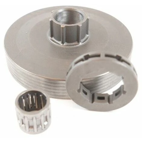 Pignon à bague, permet de ne remplacer que celle ci une fois usée au lieu de la cloche complète.