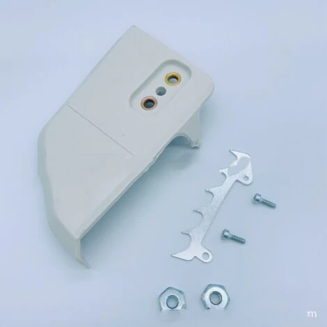 Contenu de l’emballage : 1 coque de pignon, 1 ajusteur de chaĂ®ne, 2 Ă©crous, 2 goujons.