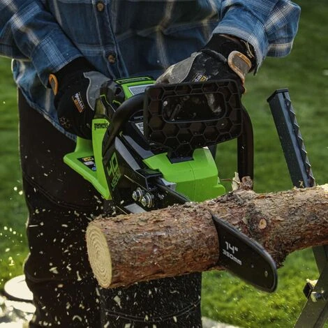 La nouvelle scie Ă chaĂ®ne sur batterie GD40CS15 de la marque Greenworks est dotĂ©e d’une vitesse de chaĂ®ne impressionnante de 12 m/s. La barre de 35 cm rend cette tronçonneuse exceptionnelle parfaite pour couper les petits arbres ainsi que pour Ă©laguer les branches. L’interrupteur de dĂ©marrage instantanĂ© contribue Ă une manipulation rapide et simple, et les faibles niveaux de bruit vous permettent de travailler sans dĂ©ranger vos voisins. L’outil fournit jusqu’Ă 30 % de puissance en plus grâce Ă son puissant moteur sans balai. Un fonctionnement de sĂ©curitĂ© Ă deux boutons vous assure d’Ă©viter tout dĂ©marrage accidentel.