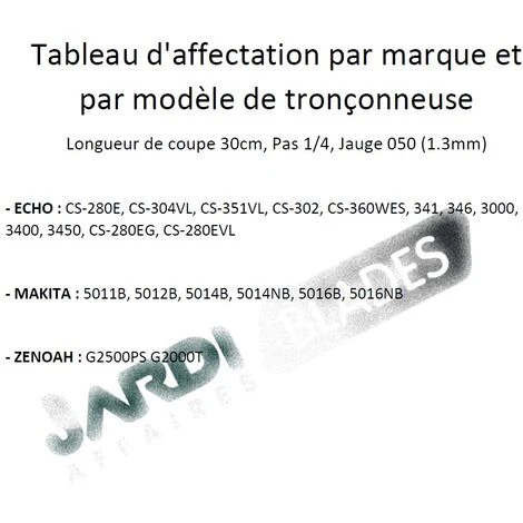 Guide Oregon 120SDAA041 longueur de coupe 30cm, Pas 1/4, Jauge 050 (1.3mm) se monte gĂ©nĂ©ralement avec une chaine Ă 66 maillons entraineurs (dents qui entrent dans le guide) RĂ©fĂ©rence Oregon 120SDAA041 ou 542800 (rĂ©fĂ©rence gravĂ©e sur le guide d’origine). On retrouve ce guide principalement sur les tronçonneuses des marques ECHO, MAKITA et ZENOAH (voir tableau d’affectation par modèle en photo ATTENTION : Merci de respecter le tableau d’affectation en photo et de vous assurer de votre Pas de chaine ainsi que de la rĂ©fĂ©rence du guide d’origine avant de passer commande