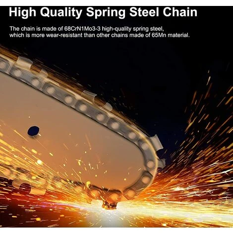 Technologie de fabrication avancĂ©e : le matĂ©riau de la chaĂźne est durci en profondeur Ă haute tempĂ©rature, grĂące Ă la technologie de dissuasion, la duretĂ© est plus Ă©levĂ©e et la durĂ©e de vie de la chaĂźne de tronçonneuse est plus longue et plus lisse, afin de garantir une coupe lisse et une lubrification optimale, moins d’usure.