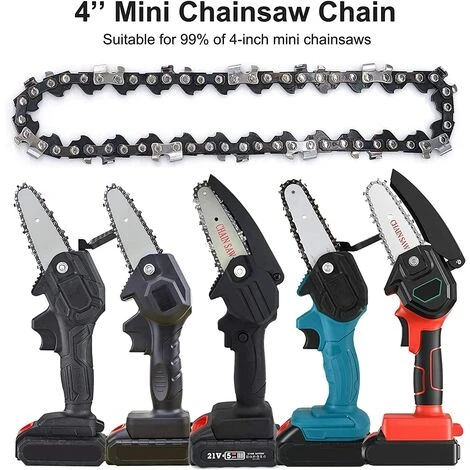 ăCompatible avec les mini-tronçonneuses 4 poucesăLa chaĂźne de tronçonneuse est un accessoire original, compatible avec toutes les mini tronçonneuses de 4″ sur le marchĂ© comme 20 V, 21 V, 24 V, 26 V, etc. Une fois que la chaĂźne est fixĂ©e Ă la machine, elle peut ĂȘtre utilisĂ©e immĂ©diatement sans aucune mesure supplĂ©mentaire.