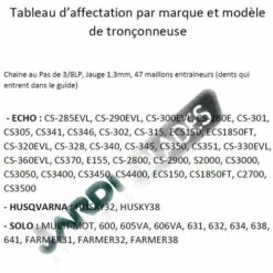 ChaĂ®ne Professionnelle semi-carrĂ©e 30 cm pour tronçonneuse Pas 3/8, Jauge 050-1,3mm, 47 Entraineurs. Correspondance Oregon 91-47E. Cette chaĂ®ne de 30 cm se monte sur les tronçonneuses Echo, Solo et Husqvarna. Sa grande qualitĂ© de coupe et sa très bonne rĂ©sistance Ă l’usure en font une chaĂ®ne idĂ©ale pour le professionnel ou les utilisateurs exigeants.