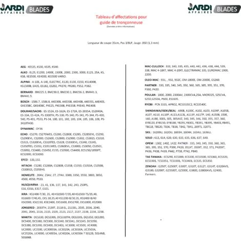 Ensemble Oregon comprenant 1 guide de 35cm 140SDEA041 + 2 chaines Oregon 91P052E Pas 3/8LP, Jauge 1,3mm avec 52 maillons entraineurs. Modèle professionnel avec guide 140SXEA041 disponible Ă©galement La qualitĂ© des produits Oregon Ă un prix très raisonnable. Se monte essentiellement sur AEG, ALKO, ALPINA, BERNARD, BOSCH, DOLMAR, SACHS, MAKITA, ECHO, EFCO, HITACHI, HOMELITE, HUSQVARNA, IKRA, JONSERED, MAC CULLOCH, OLEO MAC, POULAN, PARTNER, RYOBI, SHINDAIWA, ISEKI, BEAL, SKIL, SOLO, TAS TANAKA, ZENOAH MERCI de respecter notre tableau d’affectation en photo »
