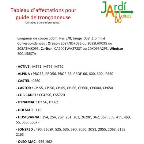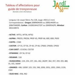 Guide Oregon 208VXLHK095 (Gamme professionnelle Versacut), ce guide offre une longueur de coupe de 50cm, Pas de chaine 3/8, Jauge 058 (1.5mm) Ce guide se monte principalement sur les tronçonneuses de marque Active, Alpina, Castel, Castor, Cub Cadet, Dynamac, Dolmar, Husqvarna, Jonsered et Oleo Mac (autres marques nous consulter) ATTENTION : Merci de respecter notre tableau d’affectation par marque et par modèle en photo sur la fiche produit ou de nous contacter si votre modèle n’apparait pas Nombreux modèles de guides disponibles en stock (plus de 150 rĂ©fĂ©rences disponibles)