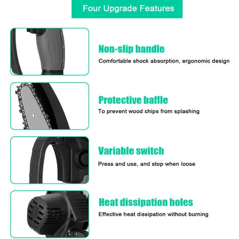 Il s’agit d’une sorte de scie d’Ă©lagage de qualitĂ©, fabriquĂ©e dans un matĂ©riau de qualitĂ© supĂ©rieure, pratique, facile Ă utiliser et Ă utiliser, large gamme d’applications, longue durĂ©e de vie. Adopte le moteur de brosse, le dĂ©marrage rapide, le freinage en temps opportun, la rĂ©gulation de la vitesse en douceur dans une large plage, le contrĂ´le relativement simple du circuit, etc. La chaĂ®ne de scie a Ă©tĂ© trempĂ©e en profondeur Ă haute tempĂ©rature, avec des dents de scie affĂ»tĂ©es, une coupe plus lisse et plus rĂ©sistante Ă l’usure. Parfait pour l’Ă©lagage, le fendage du bois de chauffage, la coupe du bois, etc. Vous pouvez essayer.