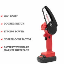 La scie d’Ă©lagage Ă©lectrique sans fil est lĂ©gère et portable pour une utilisation facile d’une seule main, avec de larges plages d’applications telles que la coupe du bois, l’Ă©lagage des arbres et de nombreux autres travaux de jardinage.