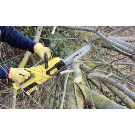Tronçonneuse sans fil à batterie 20 Volts. Compacte et puissante.