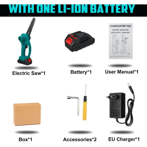 Taille de coupe: <100 mm= » » capacité= » » de= » » la= » » batterie:= » » 68vf:= » » 2000mah= » » 98vf:= » » 3000mah= » » caractéristiques:= » » -= » » pratique,= » » vitesse= » » rapide,= » » faible= » » consommation= » » d’énergie.= » » -= » » moteur= » » de= » » cuivre= » » pur,= » » puissance= » » forte,= » » coupe= » » rapide,= » » améliorer= » » l’efficacité.= » » -= » » interrupteur= » » de= » » qualité= » » précoce,= » » réglage= » » rapide= » » et= » » lent,= » » changement= » » de= » » vitesse= » » d’essai.= » » -= » » chaîne= » » de= » » plaque= » » de= » » guidage= » » de= » » qualité= » » finesse,= » » trempe= » » profonde,= » » plus= » » résistant= » » à= » » l’usure,= » » coupe= » » lisse.= » » -= » » scie= » » à= » » chaîne= » » électrique= » » rechargeable,= » » lumière= » » et= » » portable,= » » longue= » » durée= » » de= » » vie= » » de= » » la= » » batterie,= » » aucun= » » dommage= » » à= » » l’écorce.= » » -= » » corps= » » léger,= » » léger= » » et= » » pratique,= » » design= » » léger,= » » de= » » longue= » » date= » » tenant= » » et= » » pas= » » fatigué= » » les= » » mains.= » » -= » » panneau= » » de= » » commande= » » de= » » circuit= » » intelligent,= » » protection= » » contre= » » la= » » surcharge,= » » pour= » » répondre= » » à= » » vos= » » différents= » » besoins= » » de= » » construction.= » » -= » » controle= » » d’une= » » main:= » » petite= » » taille,= » » peut= » » être= » » maintenu= » » avec= » » une= » » main.= » » -= » » plaque= » » de= » » guidage= » » spéciale,= » » la= » » balle= » » en= » » acier= » » de= » » tungstène= » » n’a= » » pas= » » besoin= » » d’être= » » lubrifiée,= » » de= » » sorte= » » que= » » la= » » machine= » » réduit= » » la= » » résistance= » » pendant= » » le= » » fonctionnement= » » et= » » réduit= » » l’usure= » » de= » » la= » » machine.= » » emballage= » » inclus:= » » modèle= » » 1:= » » 1= » » x= » » scie= » » à= » » chaîne= » » électrique= » » 1= » » x= » » batterie= » » 1= » » x= » » chargeur= » » 1= » » x= » » tournevis= » » 1= » » x= » » clé= » » 1= » » x= » » manuel= » » d’utilisation= » » motif= » » 2:= » » 1= » » x= » » scie= » » à= » » chaîne= » » électrique= » » 2= » » x= » » batterie= » » 1= » » x= » » chargeur= » » 1= » » x= » » tournevis= » » 1= » » x= » » clé= » » 1= » » x= » » manuel= » » d’utilisation= » » motif= » » 3:= » » 1= » » x= » » scie= » » à= » » chaîne= » » électrique= » » 1= » » x= » » tournevis= » » 1= » » x= » » clé= » » 1= » » x= » » manuel= » » d’utilisation= » » remarques:= » » 1.= » » mesure= » » de= » » la= » » part,= » » veuillez= » » prévoir= » » une= » » erreur= » » de= » » 1= » » ~= » » 3= » » cm,= » » merci.= » » 2.veuillez= » » nous= » » laisser= » » un= » » message= » » sur= » » votre= » » couleur= » » et= » » votre= » » motif= » » préférez,= » » sinon= » » nous= » » vous= » » enverrons= » » au= » » hasard.= » » 3.due= » » à= » » la= » » différence= » » entre= » » différents= » » moniteurs,= » » l’image= » » peut= » » ne= » » pas= » » refléter= » » la= » » couleur= » » réelle= » » de= » » l’article.= » » nous= » » garantissons= » » le= » » style= » » est= » » identique= » » à= » » celui= » » indiqué= » » dans= » » les= » » images.veuillez= » » comprendre,= » » merci!= » »></100>